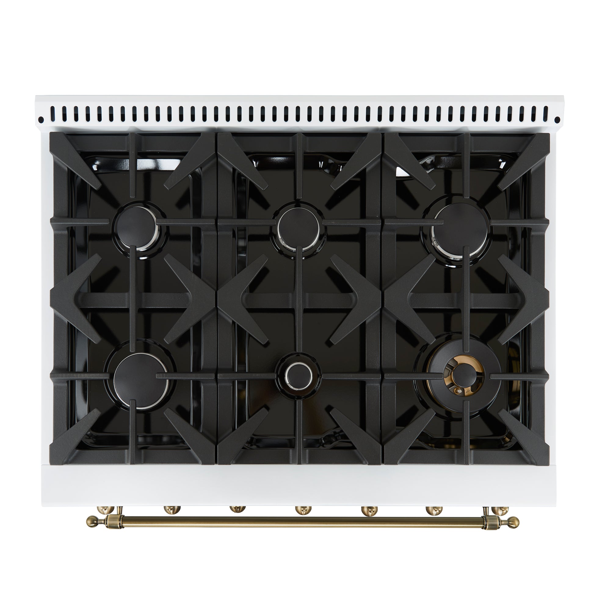 Forno Antico 36-inch Dual Fuel Range White and Antique Brass Design with 6 Sealed Gas Burners and Electric Convection Oven