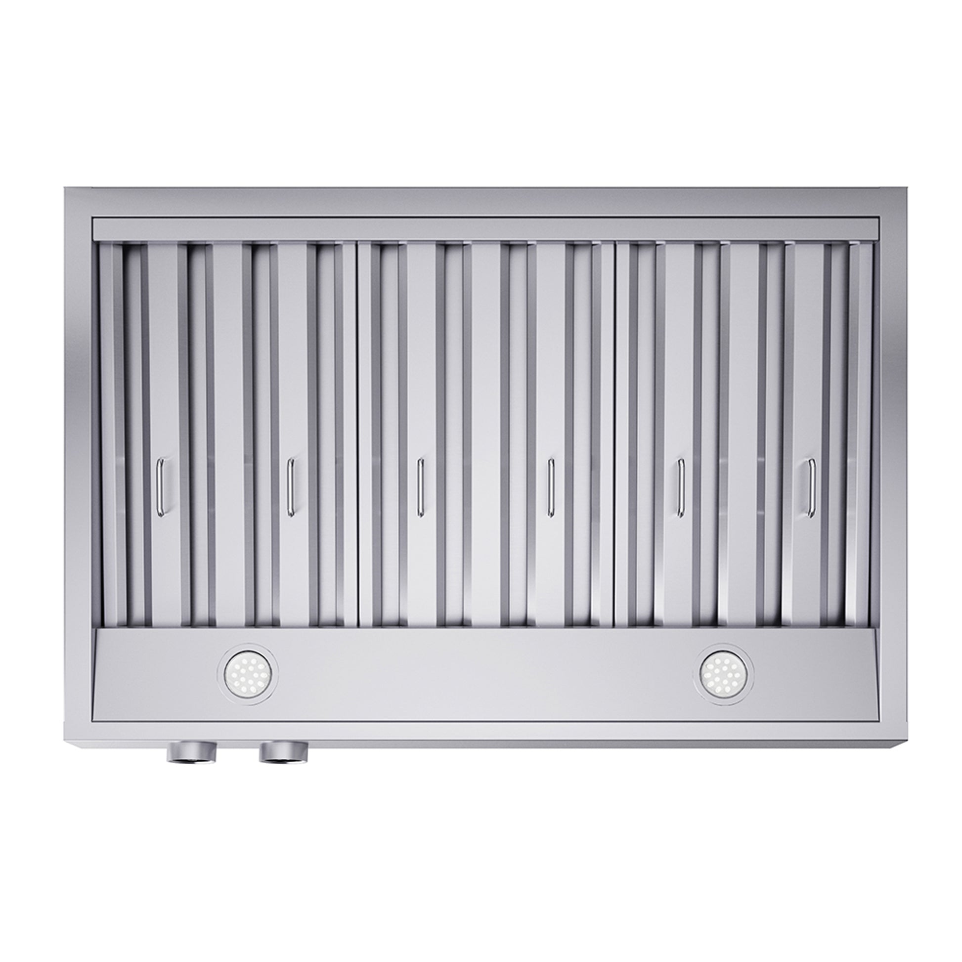 The Forno Biagio 36" Wall-Mounted Range Hood combines efficient smoke and odor removal with a modern stainless steel finish. Its 600 CFM single motor ensures strong yet quiet performance, while heavy-duty, dishwasher-safe baffle filters trap grease for easy cleaning. Designed for 36" cooktops, it features a 3-speed fan, intuitive knob controls, and dimmable LED lighting for a well-lit, customized cooking experience. The power-off delay clears lingering steam, and its versatile installation allows for wall-mounted or under-cabinet setups.