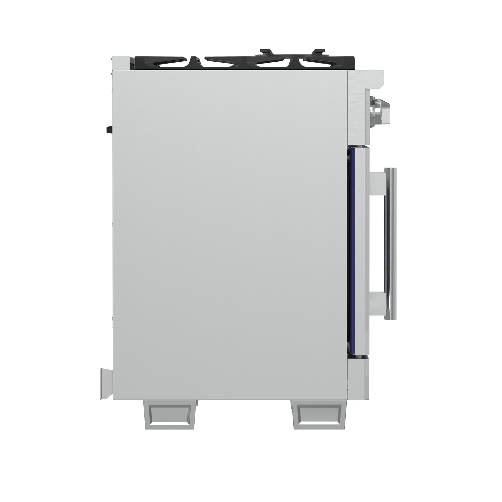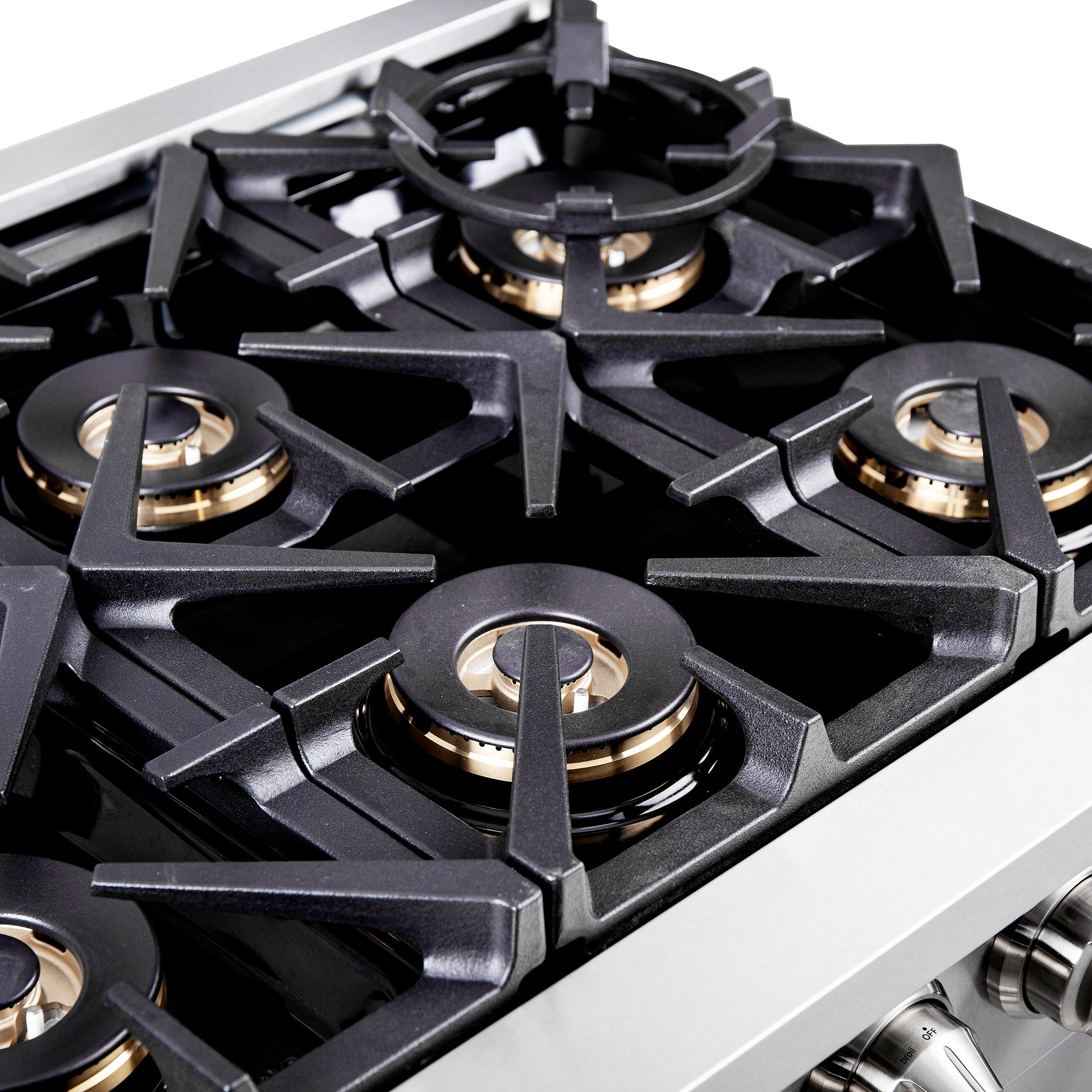 The 36 Inch Forno Capriasca French Door Gas Range elevates your home kitchen with professional style and performance. Crafted from durable stainless steel, its unique French doors provide an extra 12 Inch of access space to the oven. The range top boasts 6 sealed dual-ring brass burners, delivering a total output of 120,000 BTU for precise tasks like simmering or melting chocolate. The heavy-duty continuous cast iron grates ensure stability, covering a recessed enamel cooking surface cavity that contains spills for easy cleaning. The 5.36 cu. ft. gas oven, with a 30,000 BTU output, features a speckled blue enamel interior, convection fan, and a 3-layer glass oven door window for fast and precise cooking. The package includes an LP conversion kit, 3 stainless steel telescopic oven racks, wok support, reversible griddle, rotisserie kit, skewers forks, air fry basket and drip pan. The illuminated zinc-coated metal knobs with bezel rings add a touch of elegance that lasts for years.