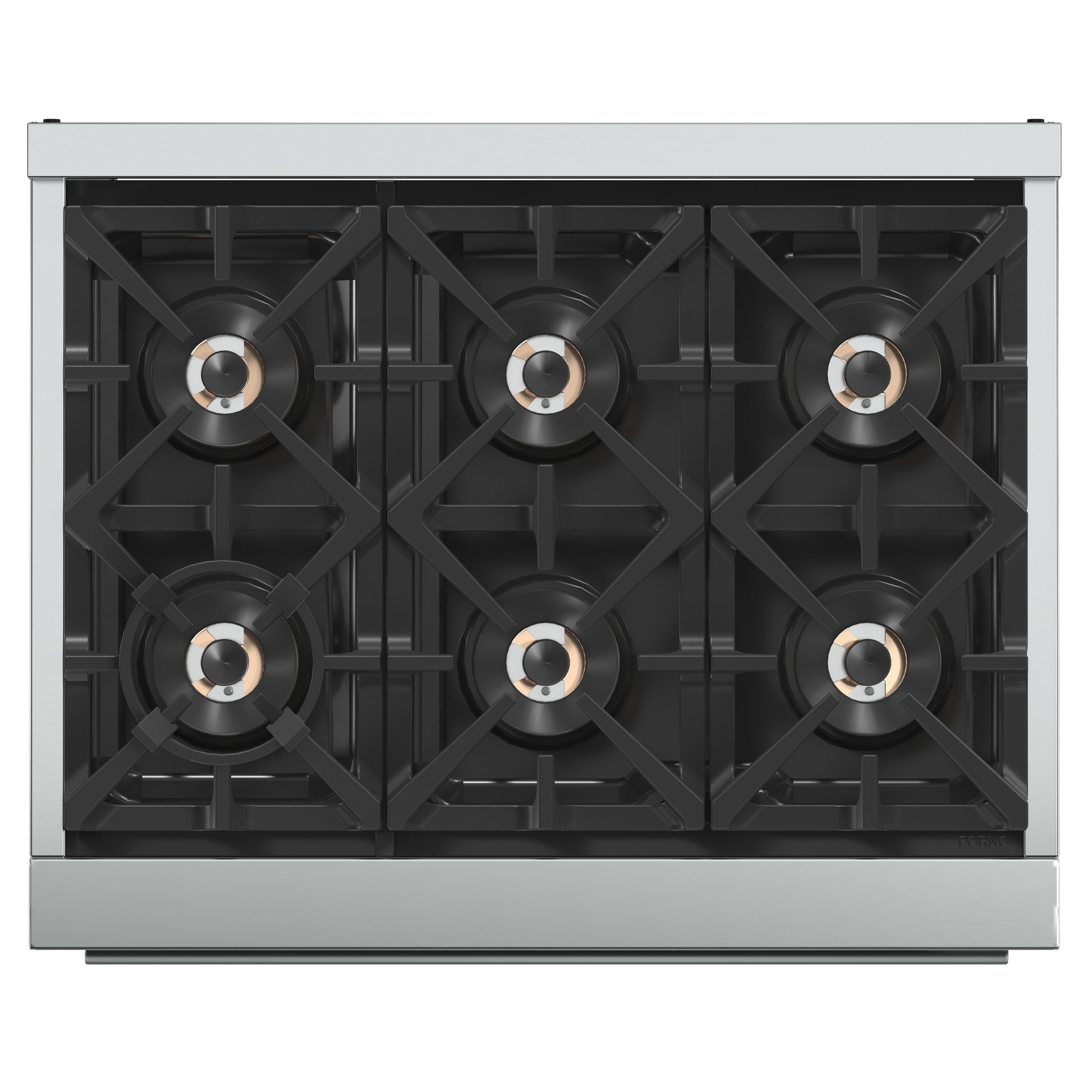 Forno Capriasca 36-Inch Gas Range, Stainless Steel, 6 Brass Burners, 120,000 BTU, Convection Oven, Energy Efficient