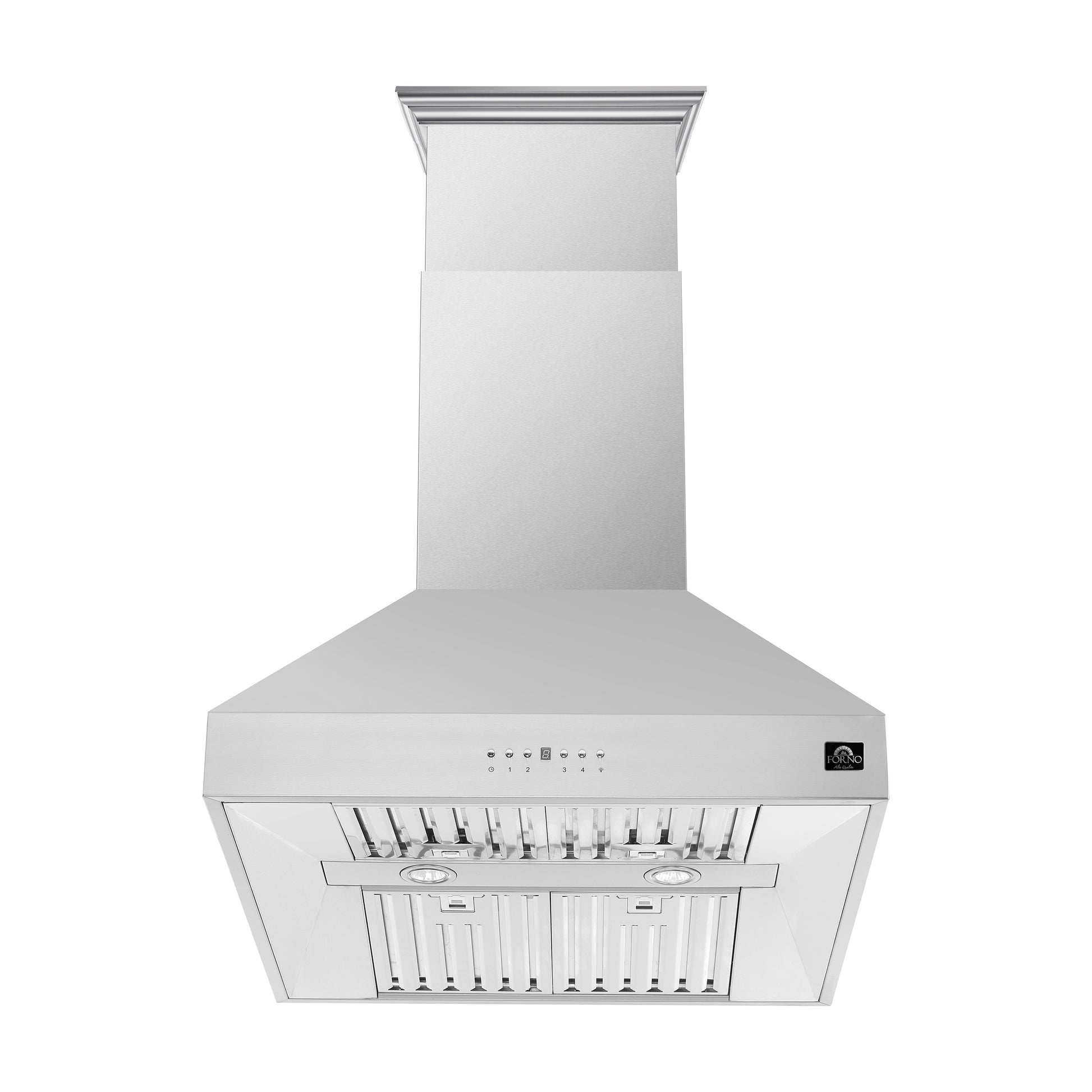 Forno Coppito 36-Inch Island Range Hood, Stainless Steel, LED Lighting, Adjustable Fan Speeds