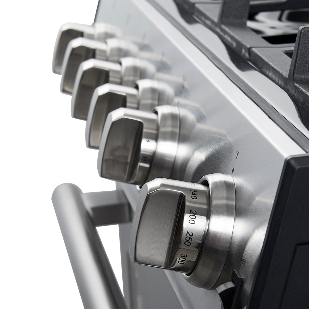 The Forno Leonardo Espresso 30" stainless steel gas range combines modern design with professional-grade performance. Its powerful range top delivers 39,500 BTU across continuous cast iron grates, providing stability and effortless cookware movement. The deep recessed black enamel surface simplifies cleanup, keeping spills contained. The spacious 5.0 cu. ft. convection oven offers 22,500 BTU of broil and bake power, with two adjustable rack heights and a high-powered convection fan for even heat distribution. Designed for reliability, the auto re-ignition feature ensures consistent performance, while natural gas compatibility and an included propane conversion kit provide flexible installation options.