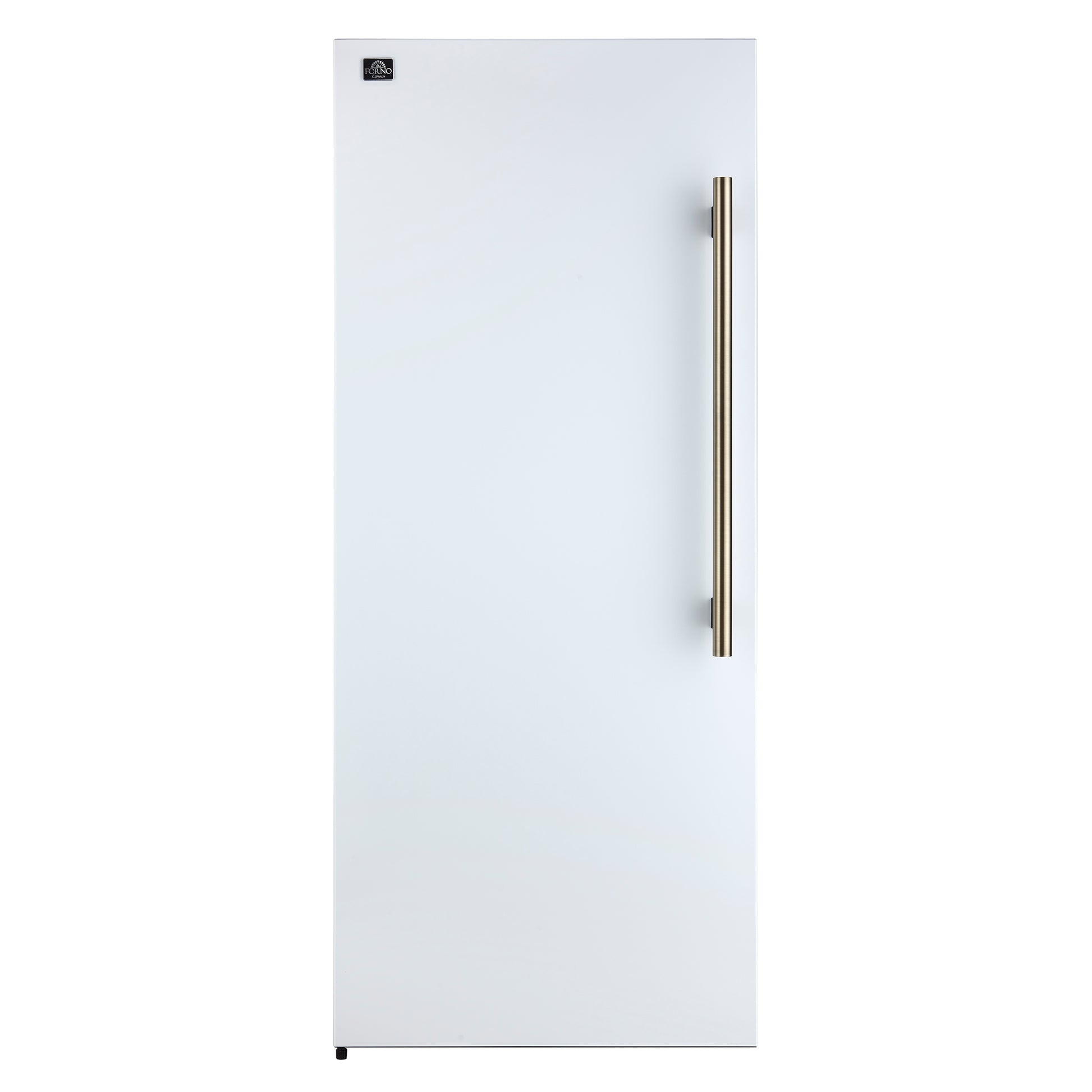 Forno Maderno 28-Inch Convertible Upright Freezer/Refrigerator in White with Antique Brass Handle, 13.6 cu.ft., Left Swing